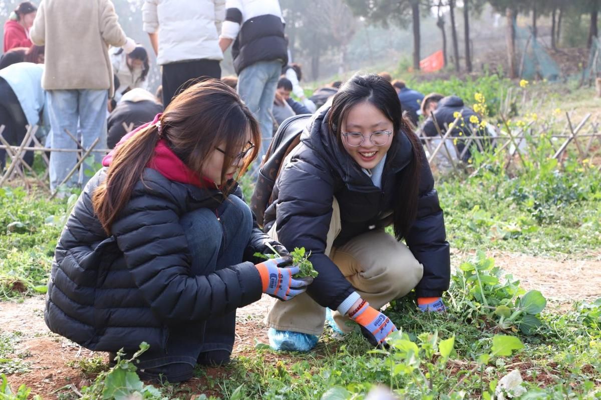 在洞山校区“青柚”劳动实践责任田举行2026年春耕仪式。校党委副书记曹利群,学生工作处、后勤管理处、团委相关负责人及各学院副书记、辅导员、学生代表参加活动。仪式由学生工作处副处长林琳主持。