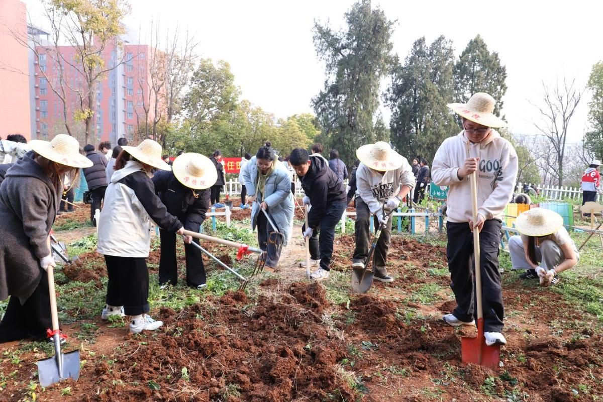 学生工作处处长陈繁介绍了“柚力劳动,校园‘耕’新”劳动实践活动方案,特别强调了种植期间的安全注意事项,并鼓励同学们走进田间地头,在种植中体验劳动的快乐,体悟生命的意义和生活的美好。曹利群带领部门负责人向各学院学生赠送锄头、铁锹等劳动工具,并宣布“青柚”劳动实践责任田2026年春耕仪式正式开始。随后,师生们撸起袖子、分工协作,在责任田里翻土播种、栽下幼苗,为校园增添一片“青柚”新绿。