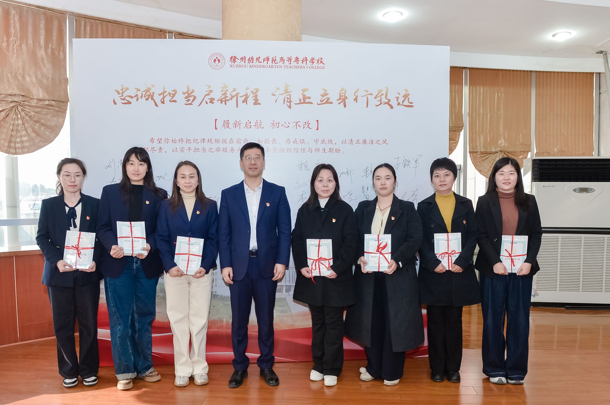 开展2026年度新提任干部廉洁教育系列活动。校党委委员、纪委书记王铁军出席活动并讲话,纪委副书记、纪委办主任孟晓慧主持活动,纪委委员、在校的新提任干部参加活动。活动以“筑牢廉洁根基 勇担育人使命”为主题,通过警示教育、任职表态发言、书籍赠送、廉洁寄语撰写、廉政谈话等环节,为新提任干部上好履新“第一课”。