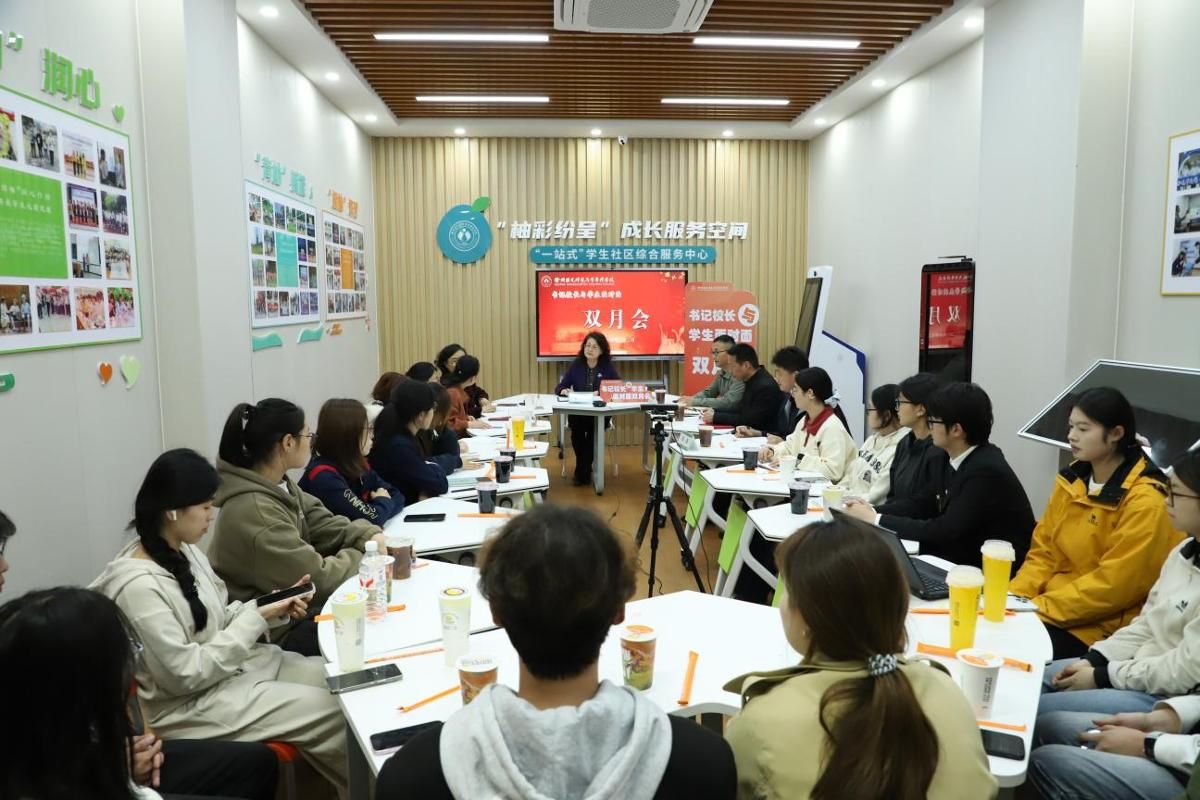 在洞山校区尚美楼“一站式”学生社区服务中心召开第十九期“书记校长与学生面对面”双月会。校党委副书记曹利群出席会议,与学生面对面交流。学生工作处、图书馆、后勤管理处、安全保卫处、团委相关负责人及各学院学生代表参加了此次活动。会议线上、线下同步进行。