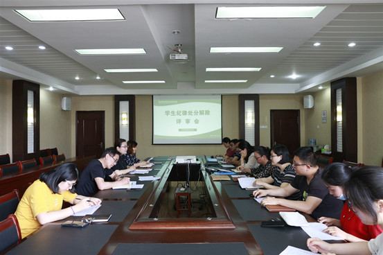 会上,丰娴静副处长对本次学生纪律处分解除工作的前期准备和审核情况进行了说明,并针对审核过程中出现的问题进行了反馈,同时对各院系学生违纪处理工作提出了具体要求。褚香处长强调,处分是学生教育管理的一种方式,要做好违纪学生的一对一跟进教育,引导学生认真反思,通过学习实践不断成长。班主任、辅导员要重点关注处分学生,加强心理健康教育和日常行为规范养成教育,引导学生成长成才。校学生违纪处理听证委员会成员认真审定了各院系提交的说明材料并进行了集体评议。
