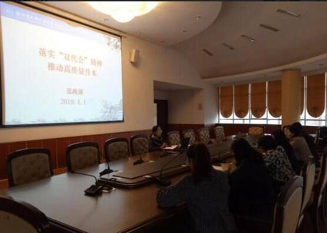 4月1日下午,思政部全体教师在洞山第二会议室举行糖果派对官方 一届三次“双代会”精神学习讨论会。思政部全体教师参会,曹清副主任主持会议。