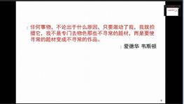 杨老师首先从“什么是一幅好的摄影作品”讲起,借用历史上最著名的32张摄影作品反哺摄影标准,教大家学会如何衡量摄影作品的好坏,懂得真正的摄影作品必须有一定的思想深度。随后杨老师分享了爱德华·韦斯顿的一段名言“任何事物,不论出于什么原因,只要激动了我,我就拍摄它,我不是专门去物色那些不寻常的题材,而是要使寻常的题材变成不寻常的作品”,这段话可以作为艺术设计专业同学创作的方法论,大家可以从“在自然与生活之内”和“在前人艺术品之中”两大范围内收集素材,专注自己感兴趣的各种元素,不论从宏观到微观,还是从具象到抽象,思考元素之间相互关系,运用艺术形式语言解构并重构。