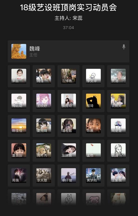 按照教务处关于2018级三年制非师范专业学生顶岗实习工作的部署, 6月30日下午,美术系召开了18级艺设班学生顶岗实习线上动员会。会议由系副主任宋蕊主持,班主任李天慈、艺术设计教研室主任王丽芳、美术系主任魏峰和全体18级艺设班学生参加了此次会议。