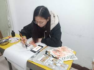 2020年春学期,因为疫情,我们采取了线上的方式组织美术课教学。学前教育专业的儿童水墨这个模块,只安排了4周左右的教学计划,这么短的时间内,让这群非美术专业的学生掌握中国画的笔墨技法是不现实的,我们更多的是让学生基于专业和未来的职业,体验这种传统文化。