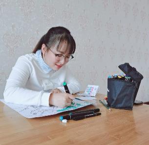 不知是何时,爱上了传统元素,看到这些东西,便移不开眼睛。最开始,喜欢在手机里存大量相关的图片,并尝试用铅笔描绘。渐渐地,接触了水粉、丙烯、水墨、水彩等材料,我可以将我喜欢的元素展现在画纸上,这让我感到很满足。女子大美为静心,男子大美为信仰,而这些底蕴丰厚的传统文化正好可以滋养我们的心灵!(2018级学前教育14班 曹冰婵)