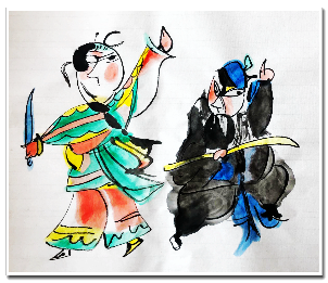 水墨画是中华民族传统文化之一,有幸,我能在美术课中学到,感受毛笔与宣纸碰触间的笔墨情致。当水墨画碰上戏曲时,便是一种不一样的体验,一个个鲜活的戏曲人物在毛笔的挥洒下,更是显得别有一番情趣。在如此优秀的文化渲染下,我们不妨静下心来,细细体会其中的绚彩人生。(2018级学前教育14班 王佳雯)