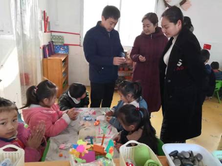 小屯幼儿园位于苏鲁交界处,距离山东省微山县西平镇不到500米的距离,是江苏省最靠近省界的幼儿园之一。这是一所由小学撤并后改建的幼儿园,硬件条件较好,但软件条件较弱,多次迎接验收成绩均不理想。美术系得到帮助申请后,由魏峰主任带领,师生一行三人带着满满一车环创材料驱车100公里到达幼儿园。师生受到丁晓晴校长等幼儿园教师的欢迎。美术系师生逐一参观了每班的活动室,对幼儿园特色的构建、区角的布置、功能的发挥、材料的投放、空间的利用等提出详细的建议。参观后,宾主双方还进行了有关幼儿园发展的座谈。