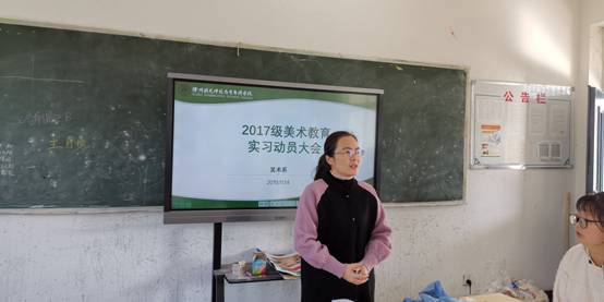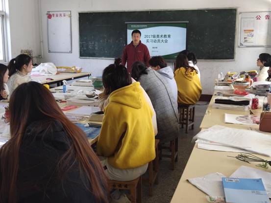11月14日下午,美术系在美术楼401画室召开了2017级美术教育专业学生实习动员大会。动员会由美术系主任魏峰主持,实习带队教师邵统平、教务秘书王优以及2017级美术教育专业学生参加了动员会。