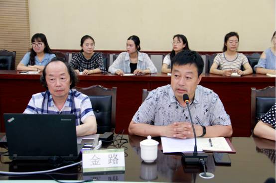 金路老师讲学的主题是《儿童绘画语境探微—睢宁儿童画发展及育人功能》,他分别从儿童美术与儿童绘画、睢宁儿童画成长起因、睢宁儿童画发展脉络、睢宁儿童画语言符号、睢宁儿童画发展思考等几个方面讲解了他对儿童美术教育和睢宁儿童画的理解。金老师的讲座,实践与理论结合,通过大量图例进行论证,让与会师生对睢宁儿童画有了更深一步的认识,其儿童美术教育的观点引起共鸣。