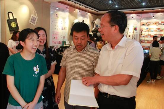 开幕式后,与会领导和老师与全体学生合影并饶有兴致地参观了学生设计作品展。各位领导和老师在每一组作品前驻足,详细询问作品的创作思路、文化内涵和对设计作品深加工的想法,师生对学生的设计作品予以赞赏。蔡校长指出,高职专业要加大产学研融合,围绕特色做文章,要重视设计专业学生创意产品的转化,服务社会。曹校长建议加强院系专业之间的互动,打造更有竞争力的专业。