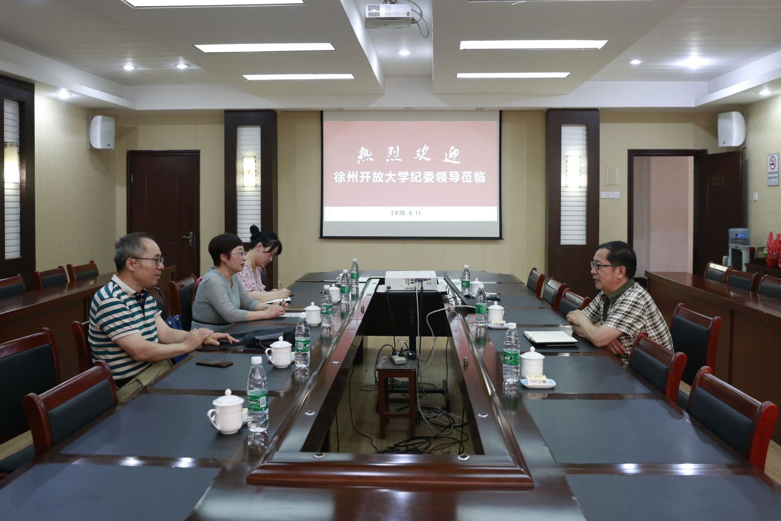 6月11日下午,徐州开放大学党委副书记、纪委书记袁惠率队来校调研交流纪检监察工作,校党委委员、纪委书记王启高主持了交流会。