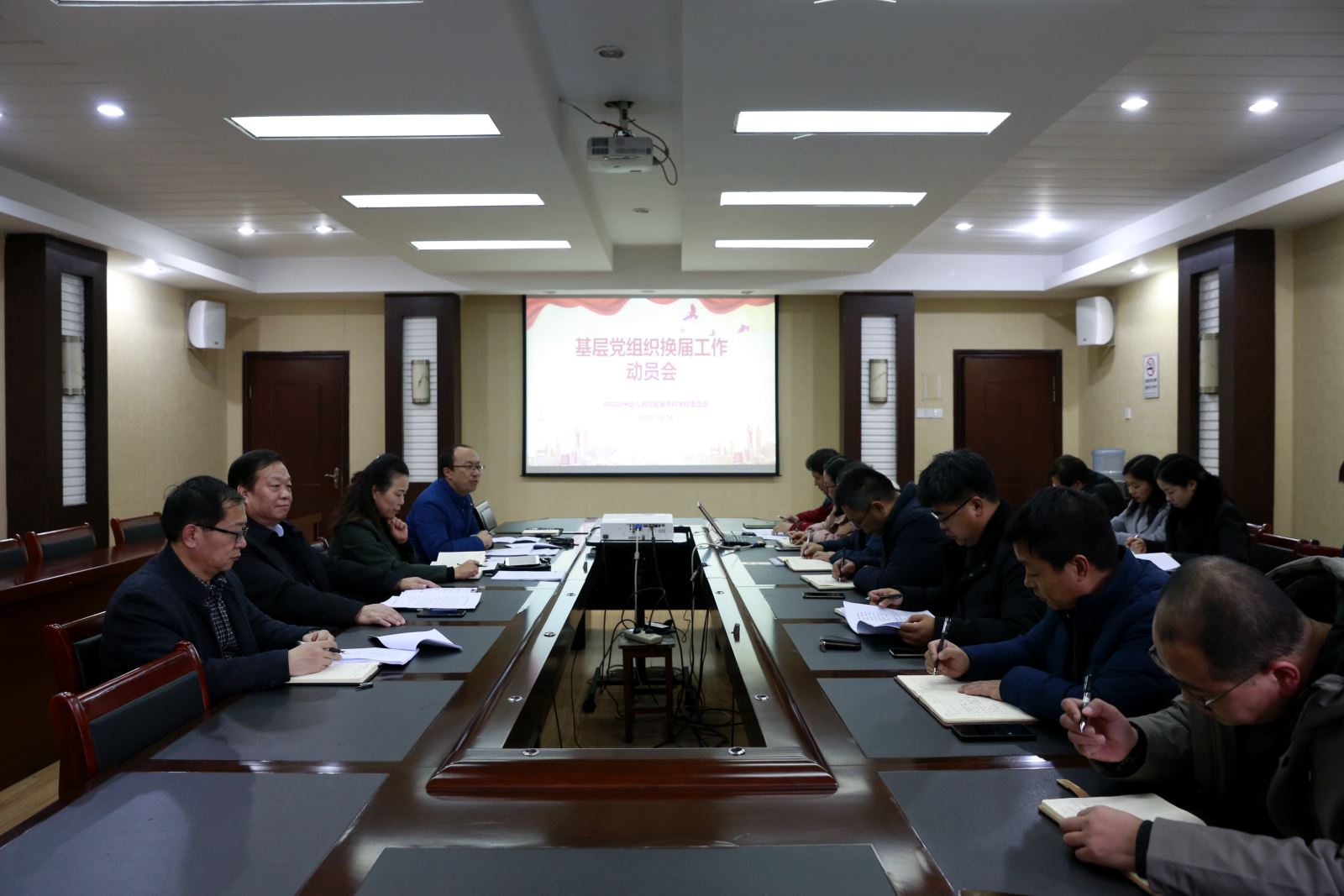 党委在洞山校区208会议室召开了全校基层党组织换届工作动员会。党委书记王晓三出席会议并讲话,党委副书记马玲、党委委员、纪委书记王启高出席会议,全校各二级党组织书记参加会议。