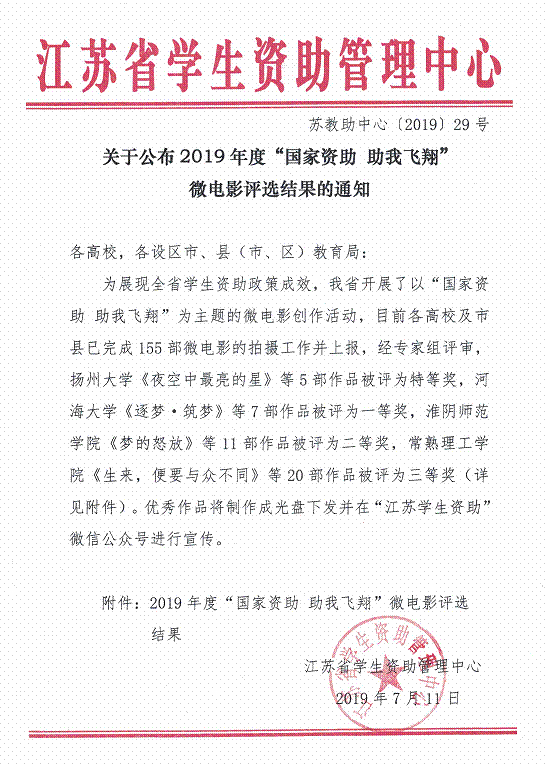 为展现全省学生资助政策成效,江苏省学生资助管理中心开展了以“国家资助 助我飞翔”为主题的微电影创作活动,经专家组评审,糖果派对官方