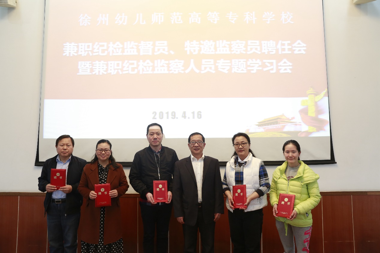 会上,王启高向受聘的24位兼职纪检监督员和4位特邀监察员颁发了聘书并合影留念。杜军勇宣读了关于聘请兼职纪检监督员和特邀监察员的通知文件及工作职责。学前与特殊教育学院党总支副书记李海芸、后勤管理处副处长韩锐两位代表先后发言,表示要正自身、强学习、重履责,要坚定信心、明确责任、真抓实干,不遗余力地做好监督监察工作。