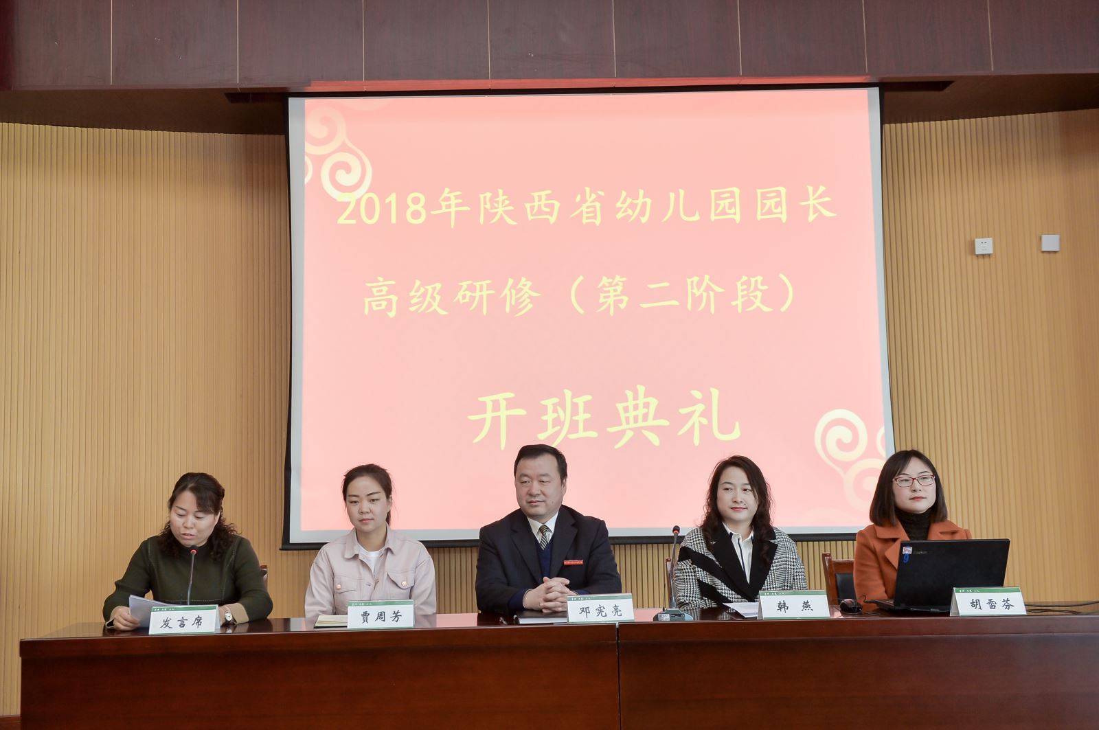 党委委员、副校长邓宪亮、继续教育学院副院长韩燕、班主任胡雪芬、李楚老师以及来自陕西省各地65位幼儿园园长参加了此次开班典礼。典礼由韩燕副院长主持。