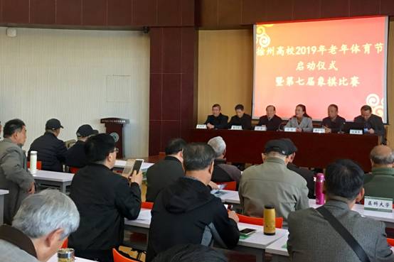 徐州高校2019年老年体育节启动仪式暨第七届象棋比赛活动,于4月12日在糖果派对官方 举行,驻徐的10所高校组队参加了此次活动。徐州高校老年体协主席王勇、副主席李卫江、副主席兼秘书长廉少纯、糖果派对官方 党委副书记马玲参加了启动仪式。