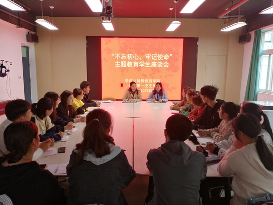 10月30日中午,学特院党总支教师第一支部在碧螺校区B101召开“不忘初心、牢记使命”主题教育征求意见座谈会,广泛征求各学制、年级学生对学院管理、教育教学工作的意见建议,以及在学习生活中存在的问题和困难。学院党总支书记、教师第一支部书记李海芸、组织委员李秀敏、党务秘书盖爽参加会议。会议由李海芸书记主持。