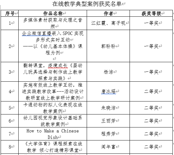 根据糖果派对官方 《关于征集疫情防控期间在线教学工作案例材料的通知》的要求,面向全校师生开展了在线工作案例材料的征集活动,体育系积极组织申报,推荐了优秀案例、专家访谈、师生感言材料。通过专家评审,我系郭盼盼老师的作品《企业微信直播嵌入SPOC实现多形式实时互动——以< 幼儿基本体操>课程为例》获得在线教学典型案例一等奖,闻年富主任《< 大学体育>课程探索在线教学 倾心打造精彩课堂》获得二等奖,19级体育教育1班李家婷同学的《疫情期间在线教学的感受》获得学生感言一等奖,《体育系在线教学访谈》获得专家访谈组二等奖及在线教学典型案例,徐晓慧老师《线上教学感言》获得教师感言二等奖。