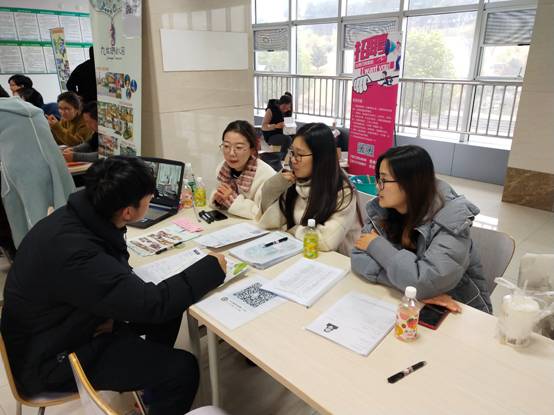 招聘会现场十分火爆。用人单位招聘负责人通过技能展示、发放红包、播放宣传片、PPT展示、面对面交流等方式向同学们介绍单位的概况以及职业发展方向。我系学生男生穿着正式,女生淡妆,精神饱满,走在大学生活动中心,认真查看每一个单位的需求,并择其适合的单位与之交流。有的单位很感兴趣,交谈甚好,并下达了面试通知,求贤若渴。通过双向选择,我系绝大部分毕业生与用人单位初步达成就业或深度面试意向。