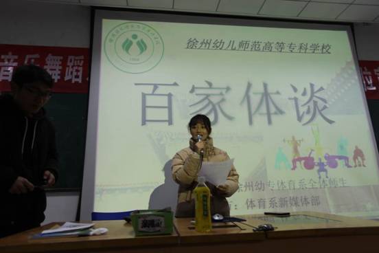 12月12日晚,体育系学生会的新媒体部在碧螺二楼阶梯教室举办了第四届“百家体谈”活动,体育系全体学生参加本次活动。活动分为三个进程:学长学姐分享经验、新生分享感受以及互动环节。
