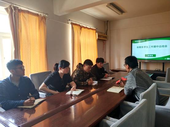 根据体育系学生工作计划的安排,体育系于5月14日上午在体育系会议室举行了体育系班主任期中总结会。会议由马岗峰老师主持,体育系全体班主任参加了此次会议。