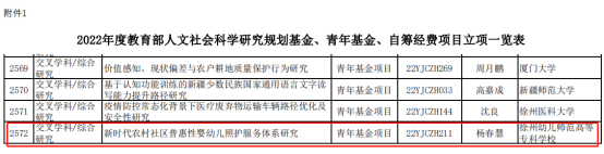 学前与特殊教育学院杨春慧老师申报的《新时代农村社区普惠性婴幼儿照护服务体系研究》喜获青年基金项目立项,糖果派对官方
