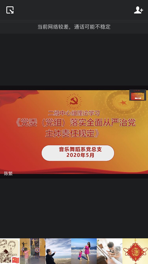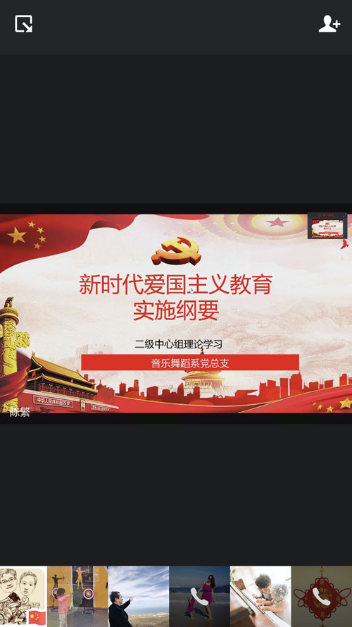 5月22日下午3:20,音舞系党总支组织开展二级中心组线上理论学习活动。此次活动由系党总支书记陈繁同志主持,音舞系党总支二级中心组成员和三级党支部书记参加了学习。