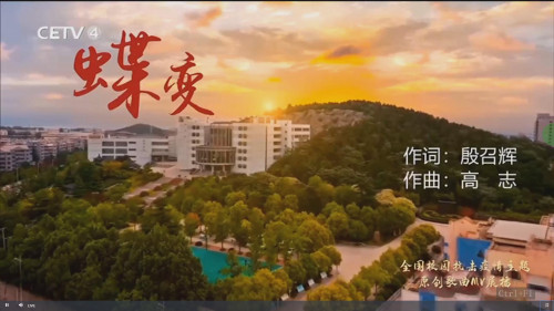 音舞系高志老师原创歌曲《蝶变》MⅤ入选中国教育电视台 “全国校园抗击疫情主题公益歌曲MV征集”活动,并于3月30日至4月3日在中国教育电视台《同上一堂课.四频道》栏目展播。