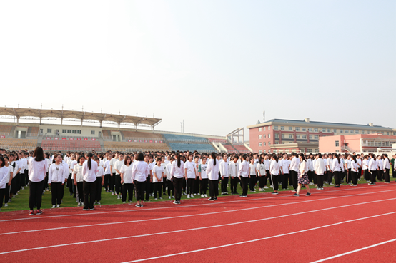 迎着初升的朝阳,国旗护卫队迈着铿锵有力的步伐走向升旗台。队列整齐、步伐坚定,护送国旗前进,在庄严雄壮的国歌声中,五星红旗冉冉升起,全体师生行注目礼,齐唱国歌。