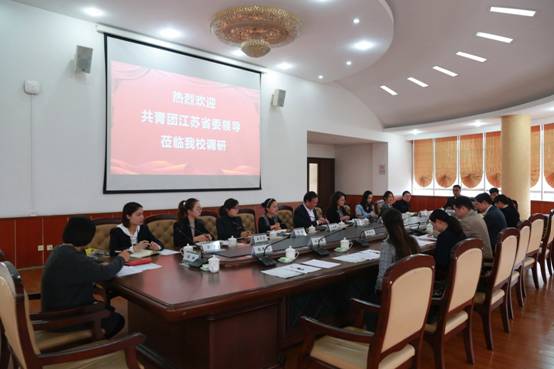 4月15日下午,共青团江苏省委副书记林小异、高校工作部部长常晓岚、团市委书记潘晓、副书记刘筱婕、学少部部长王晓慧一行赴糖果派对官方 调研共青团工作。校党委书记王晓三、副校长曹利群、校团委委员及二级院系团总支书记参加会议。