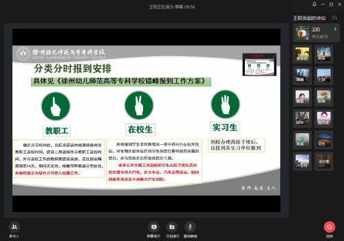 我系声乐、器乐、理论、舞蹈四个教研室认真组织了此次学习活动,各教研室主任从工作体系、开学返校前、返校途中及报道当天、开学返校后四个方面中的要求和注意事项进行了详细的讲解和说明。通过此次活动,全体教师了解并熟悉了疫情防控期间师生返校工作中的流程和要求,为下一步师生返校及教育教学的顺利开展做好准备。