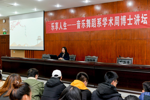 讲座从音乐类专业学生应当掌握的基础理论与实践技能问题出发,围绕音乐的本质、音乐的功能、音乐的分类、音乐与人生、音乐与教育等内容展开,将音乐美学的基本问题进行了深入浅出地解析和论证。韩坤博士结合不同时期、不同类别音乐的欣赏与分析,带领学生们走进音乐审美之门,感受音乐艺术的魅力。讲座最后,韩坤博士希望更多的有志学子在校学习期间,能够不畏辛苦、攻坚克难,静心学习专业知识、锤炼专业技能,将来在艺术教育的岗位上为国家文化的繁荣和全民文化素养的提高尽一份力。