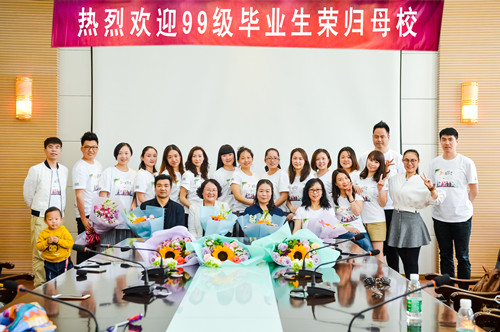 副书记马玲、99级音乐班班主任吴雪梅、任课教师丁运东、冯洁、张晋良、高昕、徐丽娅等在洞山校区热烈欢迎每一位99级音乐班学子的到来。“热烈欢迎99级毕业生荣归母校”的横幅、热情洋溢相谈甚欢的师生、“20年再聚首,青春无痕”的T-shirt,巍峨的音乐舞蹈系大楼和专业华丽的音乐厅,这些元素共同见证了母校喜迎学子、学子荣归母校的喜悦之情。