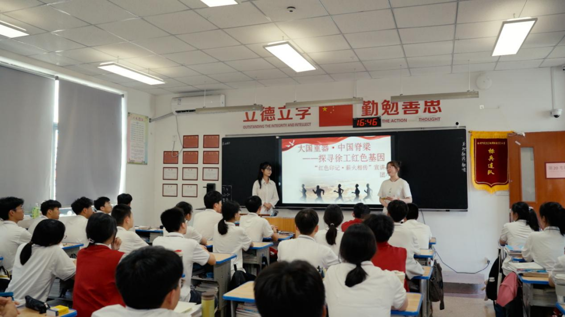 “红色印记·薪火相传”宣讲团走进中学和高校进行宣讲,讲好、讲透、讲活徐工红色故事,同时在微信公众号、B站、抖音、快手等APP上通过云端联动分享,引导青年人树立积极的人生观、世界观和价值观,在传播红色故事、传递红色精神的同时,帮助他们树立坚定不移的理想信念,厚植爱国情怀,涵养进取品格。