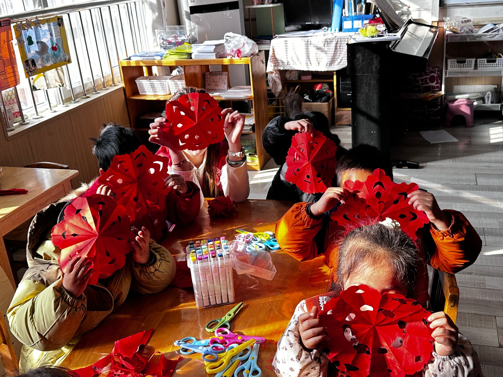 在“巧手剪春意,童心传非遗”环节,孩子们在志愿者的耐心指导下,动手剪制春节窗花。折叠彩纸、轻勾纹样、细剪轮廓……经过专注创作,一幅幅独特精美的窗花在孩子们手中诞生。童趣跃然纸上的同时,孩子们对“剪窗花”这一传统艺术的初体验,也让非遗以最质朴的方式在新时代小手中传承绽放。