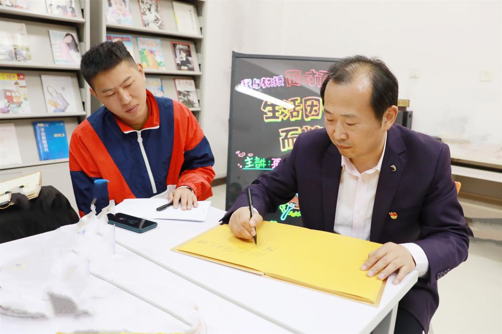 活动现场咖啡飘香,气氛温馨融洽。讲座结束前,孙玉柱教授与青年教师们合影留念,并题字寄语“用双手描绘精彩的人生”。