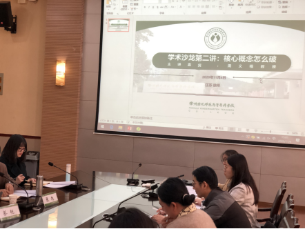 维特根斯坦在《哲学的逻辑》中说,“概念引导我们探索”,核心概念的界定对科学研究来是一项破题意义的工作,十分必要,也异常艰难。研究者对核心概念进行诠释,也即对研究对象、范畴、方法,抽取出本质属性分别给予概括,最终奠定整个研究的基础。周义程教授分别从“概念的含义和种类”“概念的内涵和外延”“核心概念破的目的”“明确核心概念的基本方法”等四个方面入手给各位老师深入浅出地讲述了学术论文核心概念的含义、种类,内外延之间的关系,核心概念破的目的以及概念间的关系等知识点。蔡艳教授、顾艳教授与张旭教授分别结合自己的专业和周教授展开了热烈的讨论,与会的中青年教师表示此次学术沙龙活动收获颇丰,对自己有着很好的启发激励作用。此外,此次沙龙活动对11月3日教育部发布的《新文科建设宣言》进行了研讨,来会学习的财务处老师表示,愿意与老师们一起进行科学研究,并提供大数据算法服务。