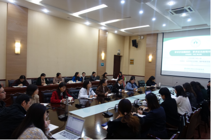 11月17日下午,由科研处、马克思主义学院和国际教育学院共同筹办的学术沙龙第四讲在碧螺校区A100会议室举行。本期沙龙主题为“换位思考投稿”,由《中国职业技术教育》杂志社刘红副主编主讲。此次活动由副校长、马克思主义学院院长曹利群主持,科研处副处长马中英、马克思主义学院副院长刘静、国际教育学院副院长盛慧以及40多位教授、中青年教师参加。
