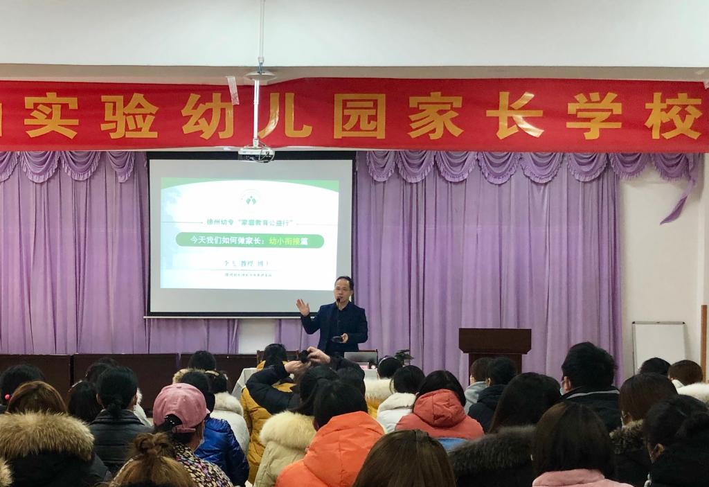 “家庭教育公益行”走进徐州开发区大黄山实验幼儿园。徐州市家庭教育研究会副会长周燕青、徐州市家庭教育研究会理事、糖果派对官方
