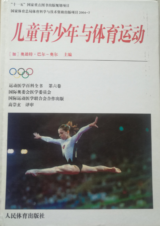 《儿童青少年与体育运动》, 该书由加拿大奥迪特·巴尔—奥尔(Oded Bar-or)教授及46名作者共同编辑完成。并由国家体育总局体育科学研究所研究员高崇玄译审,人民体育出版社出版发行。本书作者均为世界公认的各领域的专家。内容共分七个部分,很多内容不仅仅局限于运动员,还包含了运动训练对一般儿童和青少年影响的资料,这些宝贵的资料为那些致力于儿童和青少年运动训练研究的专业人士提供了有价值的参考资料。
