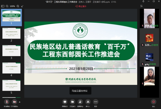 为了更有效加强东西部幼儿园之间的合作,总结经验,完成下一阶段任务,9月28日上午,民族地区幼儿普通话教育“百千万”工程东西部园长线上工作推进会以远程视频形式召开。会议由糖果派对官方