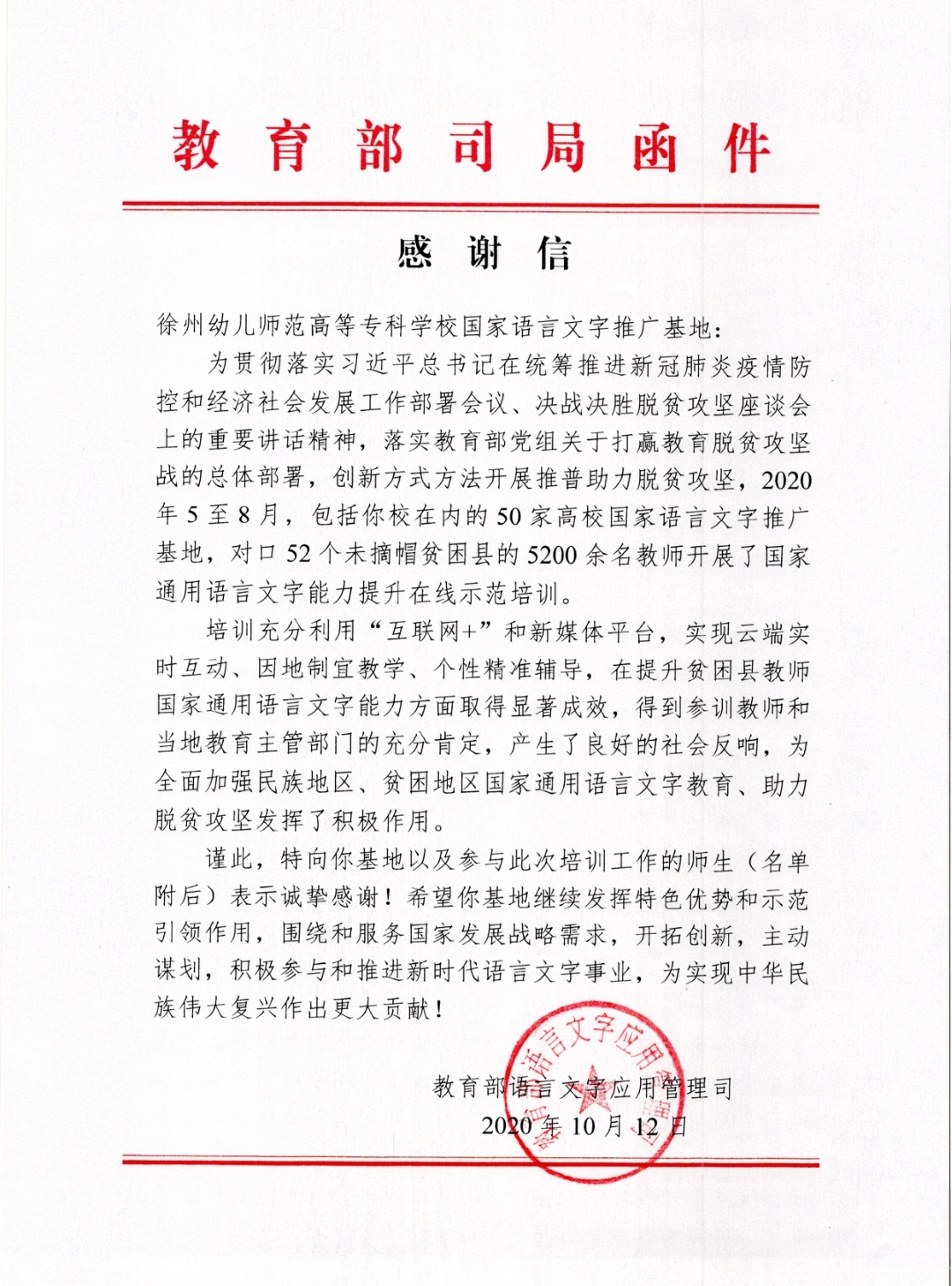 今年4月,教育部语用司按照“抗疫不松劲、战贫不停步”的思路,对首批国家语言文字推广基地发出了“对52个未摘帽贫困县开展教师国家通用语言文字能力提升在线示范培训的通知”,糖果派对官方