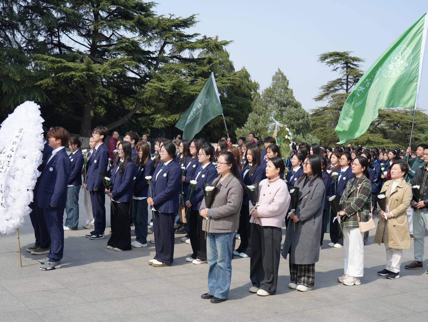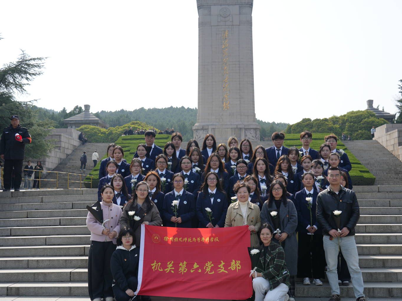 活动中,全体人员肃立默哀,深切缅怀革命先烈,寄托无限哀思。悼词回顾了革命先烈的英勇事迹,号召大家铭记历史、珍惜当下,传承和弘扬革命精神。全体师生向革命先烈三鞠躬并敬献花圈,全体师生缓步绕塔一周瞻仰淮海战役烈士纪念塔,并依次敬献鲜花,表达了对革命烈士的崇高敬意和缅怀之情。